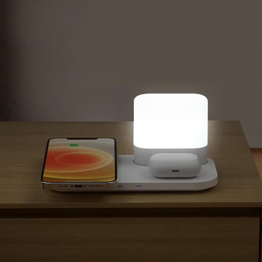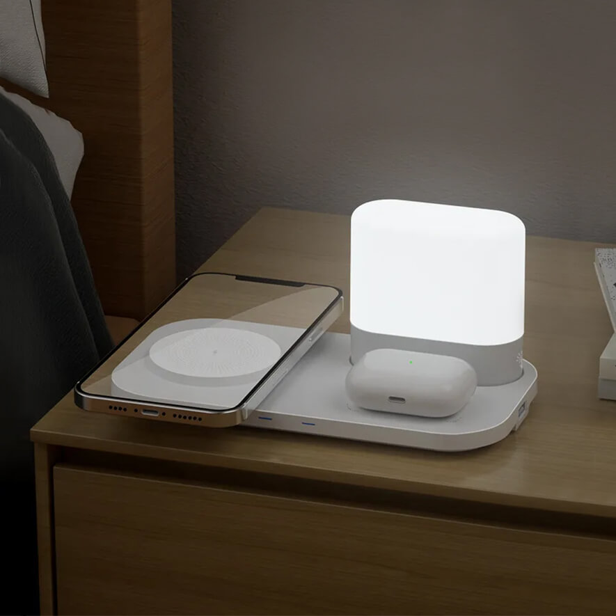 • Input power: DC 9V 2A, 12V 1.5A (Max.) • TWS wireless charger output power: 5W • Smart watch output power: 3.5W • Smartphone wireless charger output power: 5W, 7.5W, 10W • Light mode: White, 3 levels