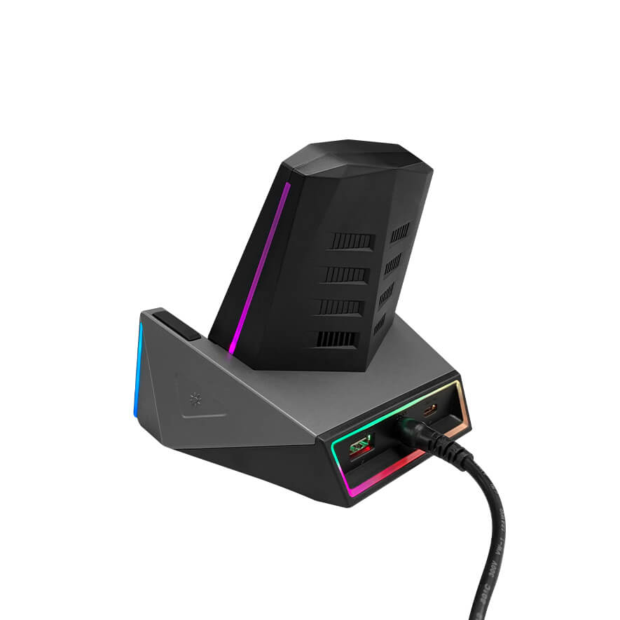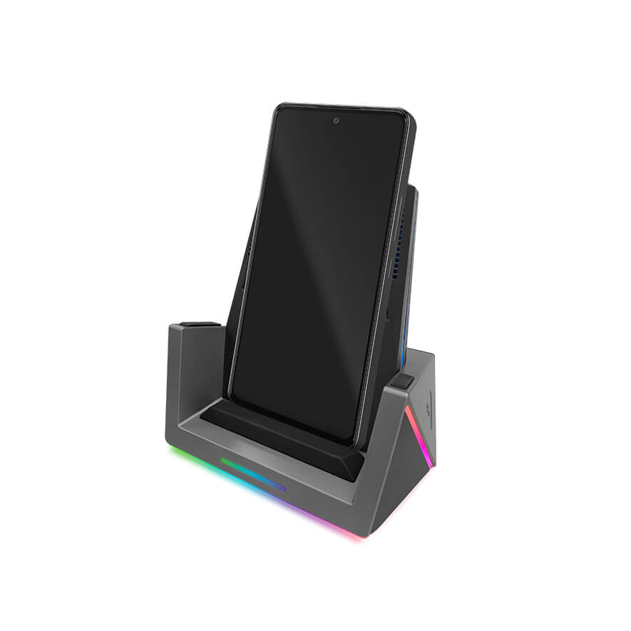 • 10W wireless charger • Two wireless charging modes: placing this phone on stand horizontally or vertically • Active cooling system with fan • 9 kinds of Cool RGB LED Design
