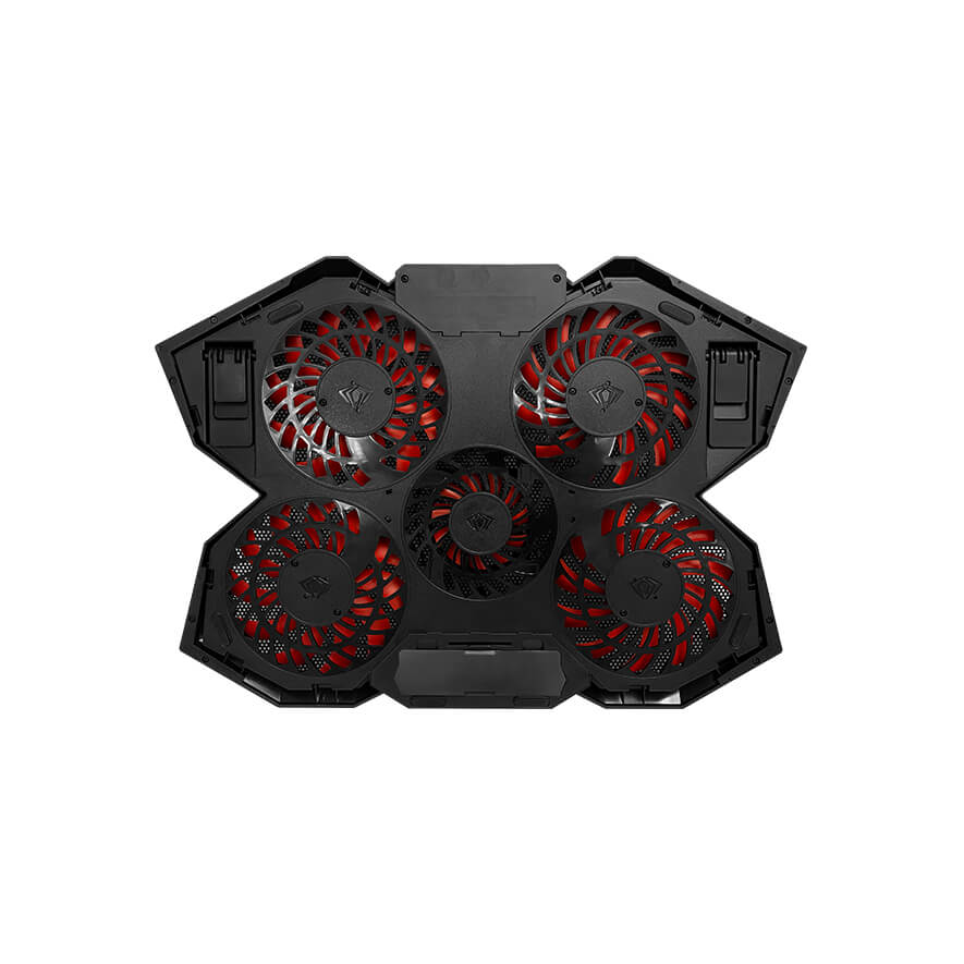 • Max load weight of 3 kg. • Designed to fit laptops up to 17" in screen size. • 3 adjustability settings for finding your optimal field of view. • 5 cooling fans with 6-level speed controls. • 2 in-built USB 2.0 ports for data transfers. • Backlit LCD display panel
