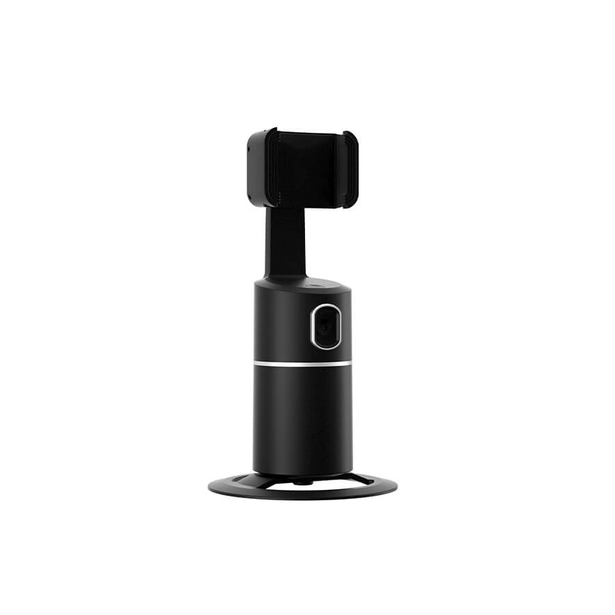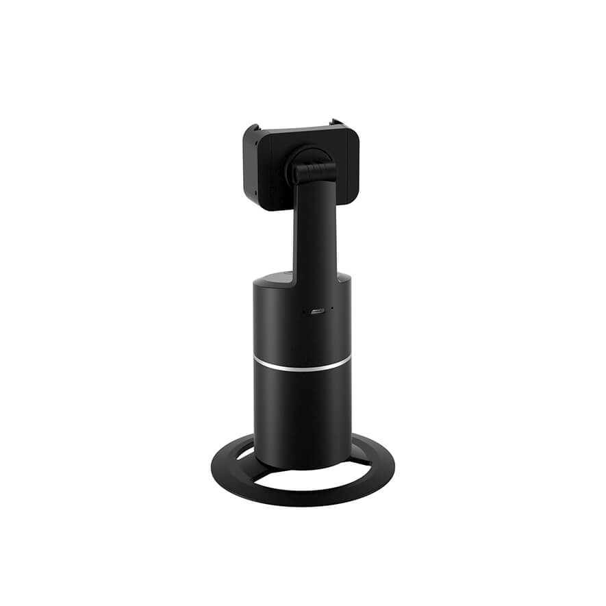 • 360° Rotation stand • Built-in camera for face/body tracking • App free • Smartphone clamp can hold devices with up a screen size of up to 6.4"