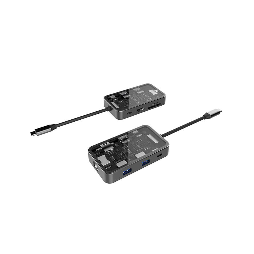 • With transparent cover • USB 3.0 interface • Features 3 x USB 3.0 ports, 1 x Type-C port, 1 x HDMI port, 1 x SD card slot, 1 x TF card slot • PD 100W • 4K HDMI output offers 30Hz video and audio • Compatible for use with various operating systems