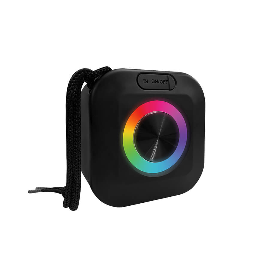 • With RGB decorative light • Up to 3 hours playtime per charge • TWS function: pairs with same model of speaker simultaneously