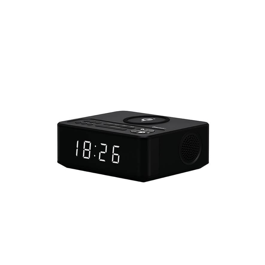• Clock radio with wireless charger • Multiple music playback modes • 5W wireless charger • USB charging port for charging via a cable • Can connect up to 3 smartphones or tablets to this speaker and alternate between devices
